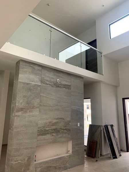 Proyecto de construcción casa con doble altura en la sala con chimenea, comer cocina con alacena, sala de tv, lavandería cerrada, planta alta 3 recamaras con vestidor y baño, terraza con asador y jardín.
