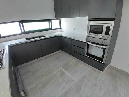 Cocina equipada con desayunador y cubierta de cuarzo