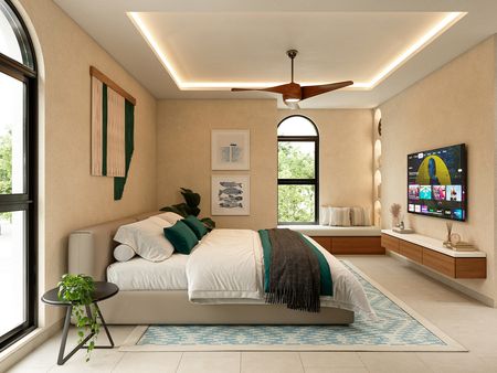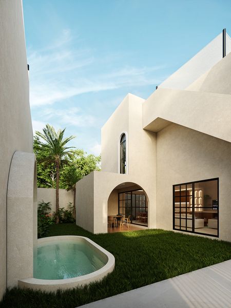 Casa estilo mediterráneo moderno, con formas curvas y arcos resaltando un cáracter único con alberca, estacionamiento y rooftop propio, diseñado especialmente para tu comidad, versatilidad y seguridad.