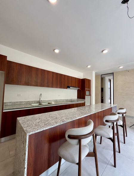 • Incluye baño privado, clóset, balcón, barra con tarja y espacio listo para equipar con frigo bar y parrilla eléctrica (estos equipos no están incluidos en el precio).