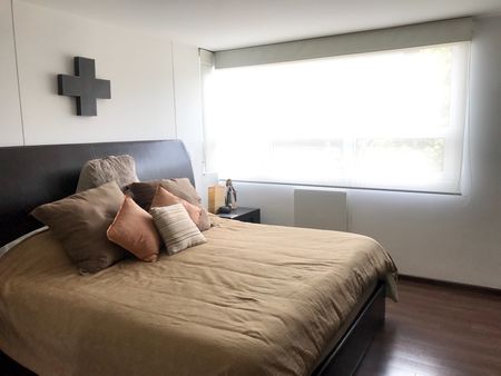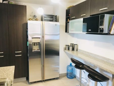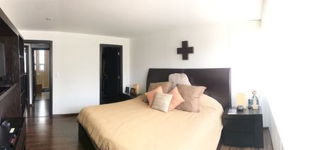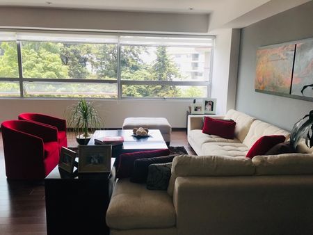 Rentado en Venta para inversionista!! AMPLIO departamento 164m2. 3 recámaras cada una con baño completo, con la mejor orientación y clima con linda vista arbolada. Amplia sala comedor, espacio para family room, cocina integral, área de lavado, cuarto de servicio con baño y bodega. Amenidades muy completas: alberca techada y climatizada de 3 carriles, jacuzzi, salas de adultos, spas, sauna, gym totalmente equipado, vapor, zona de asadores, áreas verdes, zona amplia para mascotas dentro de reserva natural dentro del desarrollo,, varias terrazas y amplios salones de eventos, estricta vigilancia y seguridad para tu familia. A 5 min de los principales centros comerciales de Santa Fe y zona de Corporativos, , a 1k a pie del parque La Mexicana, rodeado de los mejores colegios, Walmart, Sams, Hospital ABC Santa Fe y servicios en general. Gran Calidad de vida. Ideal para familias.
