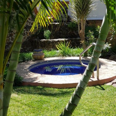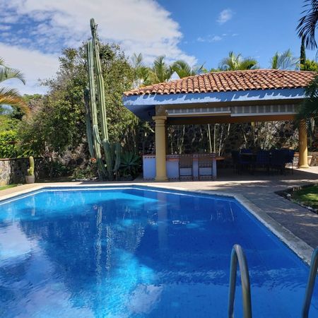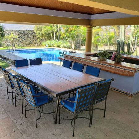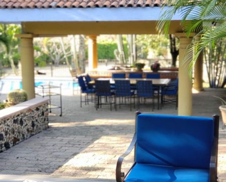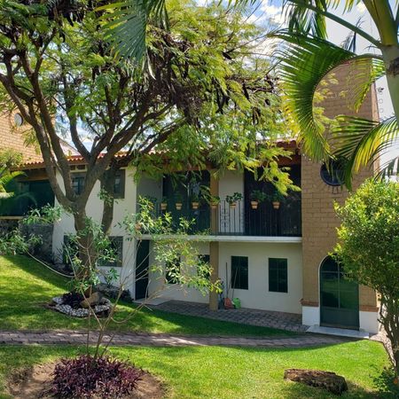 De estilo Mexicano contemporáneo, adobe, cantera, herrería, bonito jardín tropical; dentro de la casa principal 3 recamaras con baño cada una y en el exterior 2 bungalows para visitas muy bien ubicados y con calidad hotelera en todas sus amenidades , cocina equipada estilo europeo, alacena y cuarto de lavado de gran tamaño, bodega y cuarto de juegos, jacuzzi y alberca con caldera. Cuarto de servicio para jardinero y un espectacular espacio de 2,000 mts2 de terreno apto para sembrar un huerto, criar gallinas o perros.