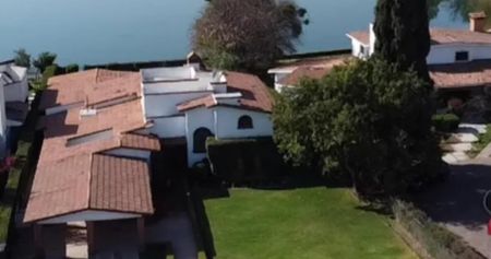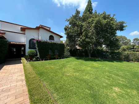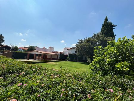 Recibidor con patio central a doble altura con hermoso árbol, cocina integral con barra desayunador con mucho espacio para guardado, cuarto de servicio con baño completo, cuarto de lavado y área de planchado y tendido. Acceso lateral para el personal de servicio. Área de antecomedor, área para comedor principal, sala principal en desnivel con jardinera y ventanal, espacio para estudio/oficina o área de TV, medio baño de visitas, tres recámaras con closet y baño completo cada una, bodega. Amplia terraza hacia el grande y hermoso jardín con árboles y flores laterales. Hermosa vista y acceso al lago.