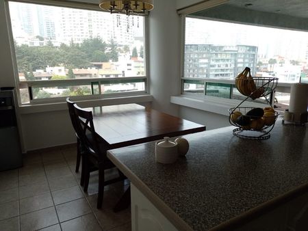 Características y acabados- acabados de la mas alta calidad, tiene 240 m2, distribuidos en 3 recamaras, 3 baños y medio, Estancia, Comedor, cocina equipada muy amplia con antecomedor, despacho, cuarto de servicio integrado, área para Lavadora y secadora, tres cajones de estacionamiento; el edificio cuenta con Salón de fiestas, ludoteca, gimnasio, jardín con juegos infantiles, asador, cancha de padel, vigilancia muy estricta las 24 horas