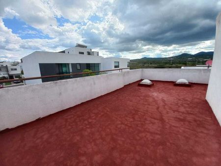 Fraccionamiento exclusivo, cerrado, vigilancia las 24 horas, alberca, terraza, asadores, lago con patos, pérgola, juegos infantiles, vivero, cancha de fútbol y circuito para caminar y andar en bicicleta. 212.65m2 terreno. 192m2 construcción en dos pisos. 95m2 roof garden con vista panorámica, jardín posterior 50m2. 4 recámaras, principal con vestidor y clóset de blancos; una de ellas en planta baja, 4 baños completos, sala, comedor, cocina amplia con barra desayunador hacia comedor, amplio cuarto de lavado, terraza, jardín, cochera 2 autos, cisterna. Incluye alarma de seguridad Antigüedad 6 años. Precio $3,650,000.