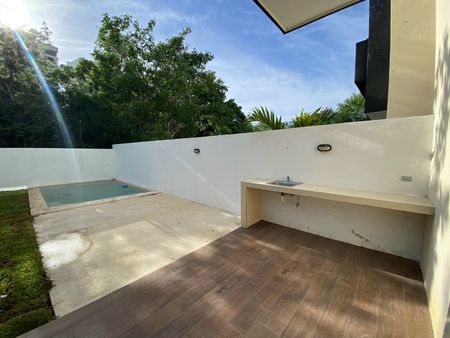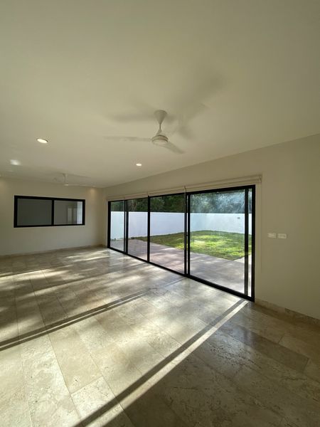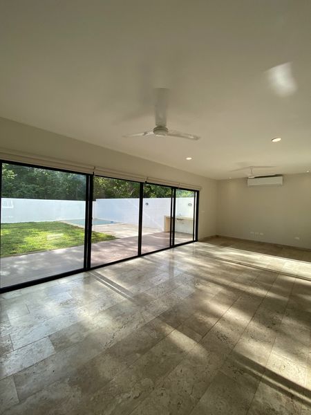 3 recámaras, c/u, con closet vestidor y baño completo, piscina, cocina integral, family room o sala de TV, cuarto deservicio.