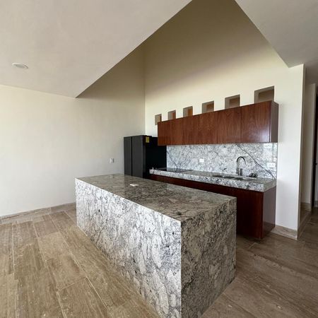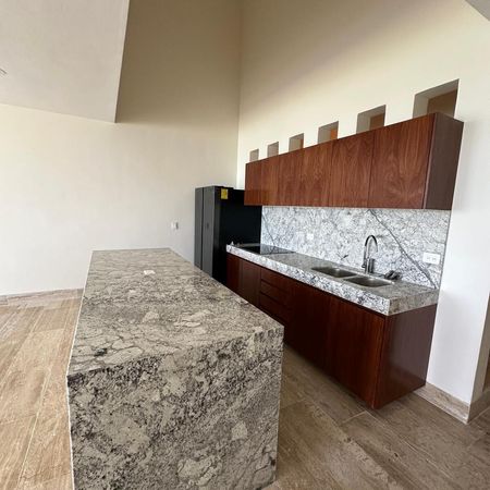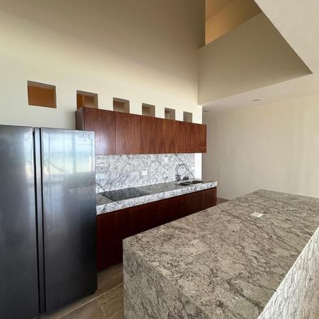 - Cocina con isla desayunador y parrilla de inducción a doble altura.