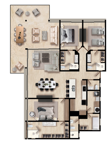 Opciones de departamentos desde 1 hasta 3 recámaras, también contamos con Penthouse.