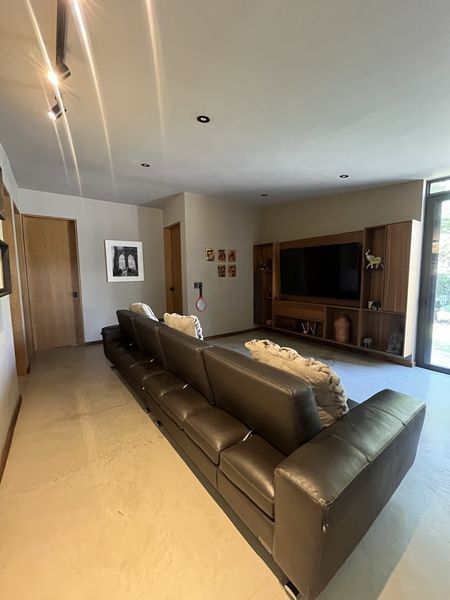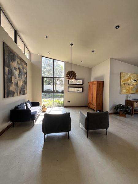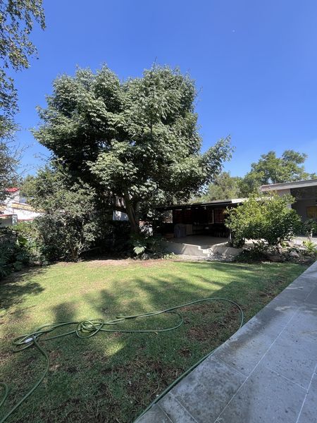 CASA DESARROLLADA EN 1 NIVEL, COMPLETAMENTE REMODELADA, CUENTA CON LA SIGUIENTE DISTRIBUCION: LUMINOSO INGRESO RECIBIDOR, ÁREA DE SALA, AREA DE COMEDOR, COCINA INTEGRAL CON AMPLIA ALACENA, ÁREA DE SERVICIO CON BAÑO COMPLETO, SALA DE TV, CON BAÑO COMPLETO PARA SERVICIO A VISITAS (DOBLE ACCESO DESDE AREA EXTERIOR Y DESDE SALA DE TV), ESTUDIO, BAÑO COMPARTIDO , DOS RECÁMARAS CON CLÓSET Y RECAMARA PRINCIPAL CON BAÑO COMPLETO Y VESTIDOR, EL CENTRO DE LA CASA ES SU INCREÍBLE JARDÍN, CON UNA CÓMODA TERRAZA. COCHERA DESCUBIERTA PARA 4 AUTOS, CON BODEGA.