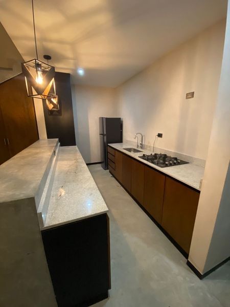 * Cocina equipada, con estufa, refrigerador y alacena.