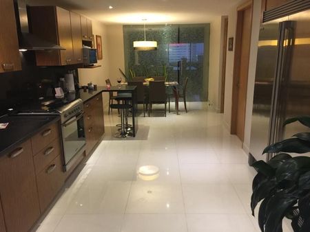 Hermoso, amplio e iluminado departamento en Mediterránea en Santa Fe. Cuenta con 290 metros perfectamente distribuidos, 3 recamaras cada una con baño, dos tienen walking closet y una closet. Amplia estancia, baño de visitas, family, cocina espaciosa con recámara de servicio, baño de servicio, closet de blancos. Balcón con hermosa vista a Santa Fe. El edificio cuenta con las mejores amenidades de la zona, alberca techada y externa, jacuzzi, gimnasio muy bien equipado. Canchas de paddle, tenis, squash, salones de fiesta, business center, sala de jóvenes, ludoteca, salón de audio visuales. Hermosos jardines con juegos infantiles, asadores, campo de fútbol.