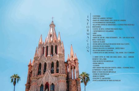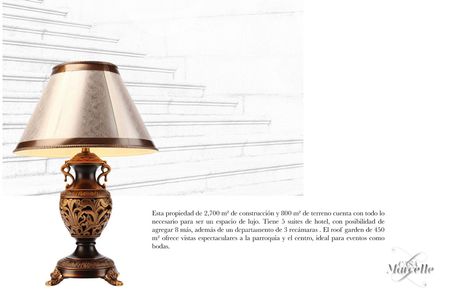 Esta propiedad de 2,700 m² de construcción y 800 m² de terreno cuenta con todo lo necesario para ser un espacio de lujo. Tiene 5 suites de hotel, con posibilidad de agregar 2 más, además de un departamento de 3 recámaras. El roof garden de 450 m² ofrece vistas espectaculares a la parroquia y el centro, ideal para eventos como bodas.