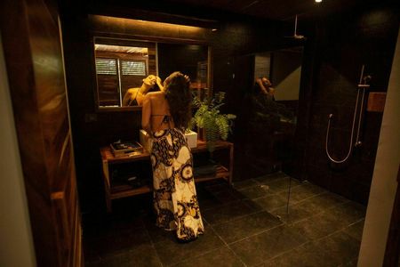 Porcelanato en baños tematizado en piedra natural