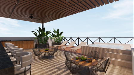 El edificio cuenta con elevador ,salón de usos múltiples , área de roof top , canal de nado , cajones de estacionamientos techados guardia de seguridad.
