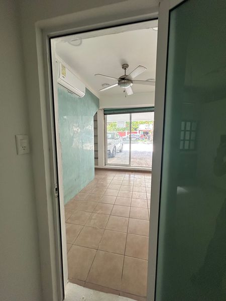 Costa de dos piezas las dos, una con acceso derecho a la calle y la otra funciona como un privado con ventiladores y dos aires acondicionados, dos bodegas pequeñas, medio baño y espacio de estacionamiento.