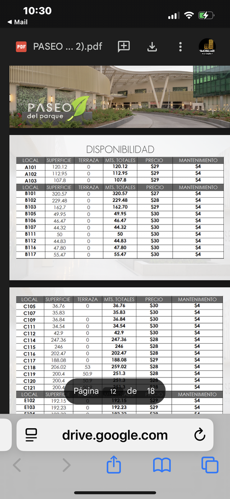 Se oferta en renta locales comerciales dentro de La Plaza Paseo del Parque !