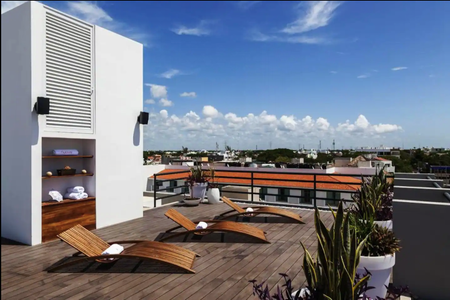 ¡El edificio también cuenta con una terraza en el roof con jacuzzi, piscina, asoleaderos y mesasal aire libre, un lugar perfecto para disfrutar del sol!