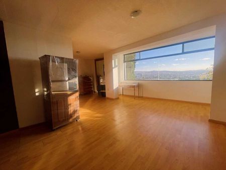 Acceso princial con vía a la sala principal y esta cuenta con vista a la ciudad, comedor con terraza pequeña, cocina cerrada y qeuipada con hormos, área de lavado, alacena y medio baño de visitas.