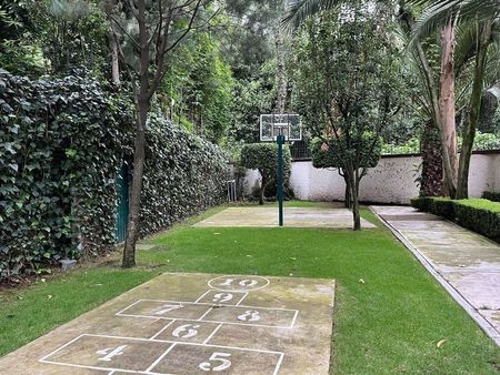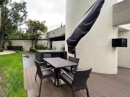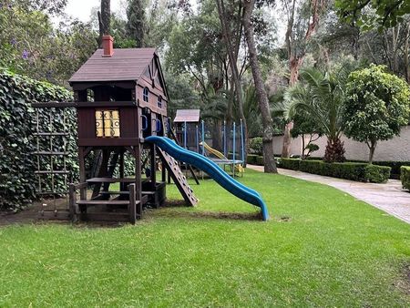 cuenta con 3 habitaciones con baño completo 2 de ellas con vestidor y adicional hay otra recámara adaptada como estudio, tiene una amplia estancia con vista verde increible que le da mucha vida y un comedor muy iluminado, la cocina es amplia con una isla-desayunador en el centro, tiene baño de visitas y una amplia área de servicio ya que son 2 cuartos de servicio , tiene