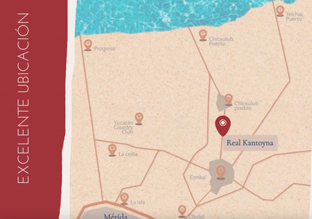 Ubicado a 5 minutos de conkal, a 13 minutos de Merida, a 15 minutos de principales centros comerciales y a solo 19 minutos de la Costa Yucateca.