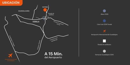 A minutos del Macrolibramiento y a unos 15 minutos del Aeropuerto Internacional de Guadalajara.