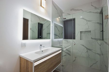 La planta baja son 111.15 m2 de construcción. El estacionamiento para dos autos está techado. La terraza con pérgolas tienes una dimensión de 63m2.