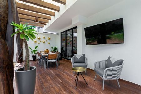El roof top se encuentra en el tercer piso con 59.37 m2 de construcción y una terraza techada de 63m2. Los espacios están diseñados para tener todos los servicios de limpieza y un espacio ameno; y cómodo para relajarse o de instrospección.