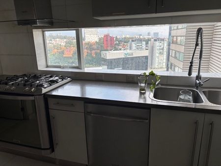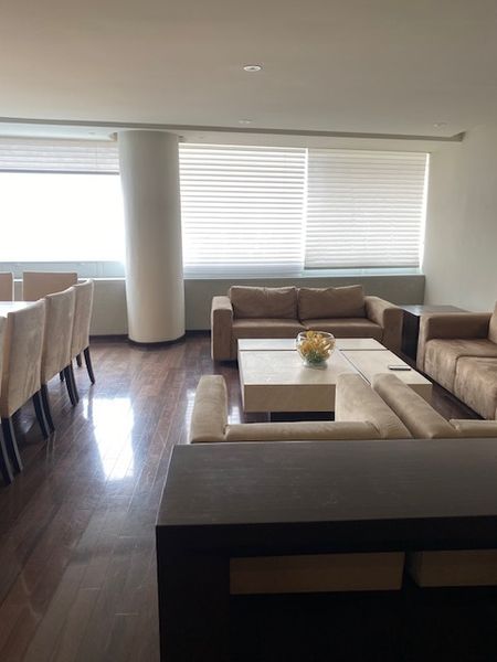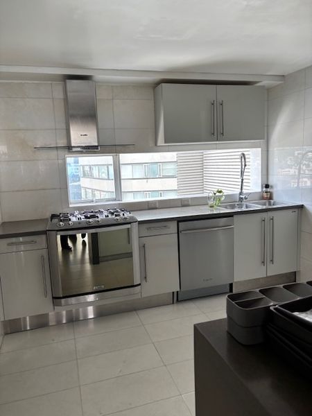 Increíble departamento de 280 metros, sala comedor muy amplias, iluminadas, con preciosa vista, 3 recamaras la principal con vestidor y baño, cocina integral con antecomedor, lavavajillas, refrigerador, cuarto de servicio, area de lavado con lavadora , secadora,y refrigerador.