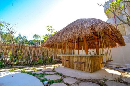 Nuestra alberca ecológica es el reflejo de nuestra filosofía de balance en consonancia con el entorno: Su sistema de purificación eco-friendly utiliza solamente sales de origen natural, haciendo que esta micro-laguna sea un espacio recreativo que se integra perfectamente en el medio ambiente de Tulum.