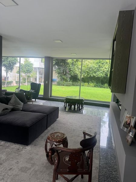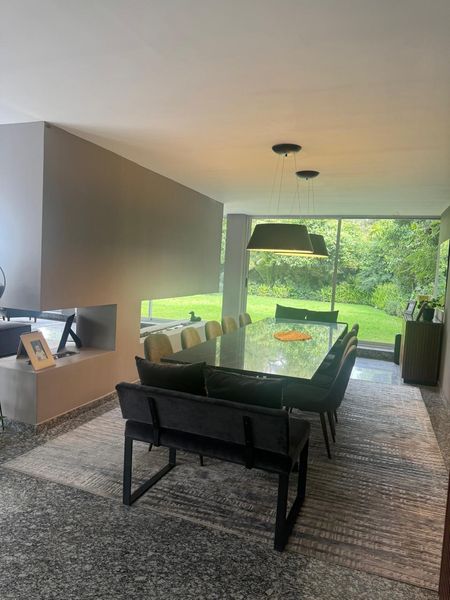 - Divina Estancia abierta iluminada muy amplia, con pisos de granito y mármol doble chimenea muy cálidas q dividen al comedor con una vista espectacular al jardín de una lado y del otro a la fuente