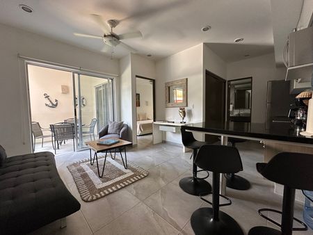 Condo Marea cuenta con 1 dormitorio y 1 baño, una cómoda sala de estar, cocina equipada y amplia terraza.