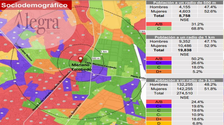 Frente Mariano Escobedo: 105 metros. - Frente Tenayuca: 68 metros. - Frente