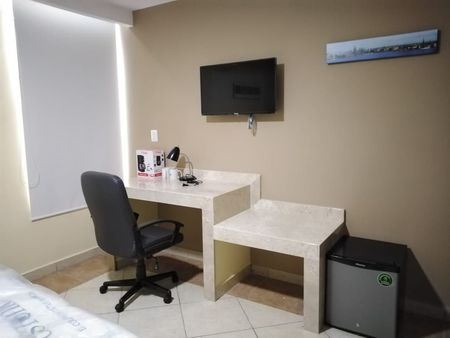 Ideal para 1 o 2 personas equipada con cama Queen Size, escritorio con silla, frigobar y garaje para 1 auto.