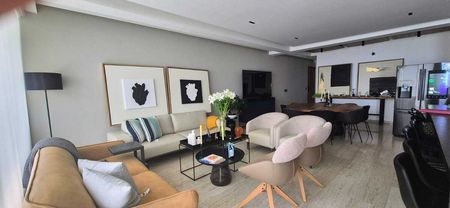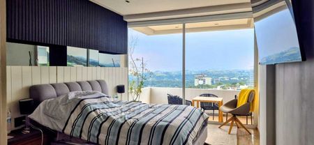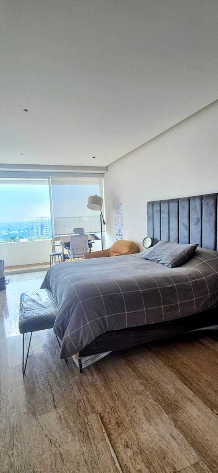 Cuenta con acabados de lujo como plafones, pisos de mármol y persianas automatizadas. Distribución: