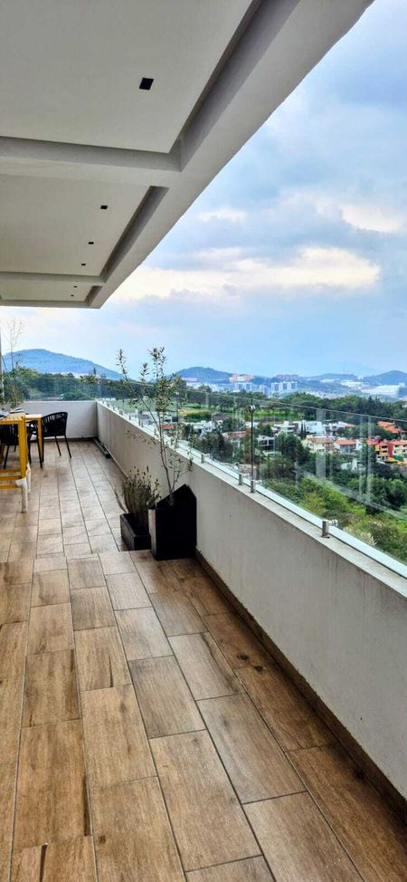 Balcón corrido que conecta la sala, el comedor y la recámara principal