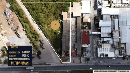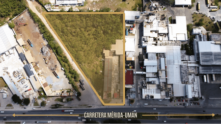 Nave/Terreno Inusdtrial en esquina con frente a Carretera Mérida-Umán