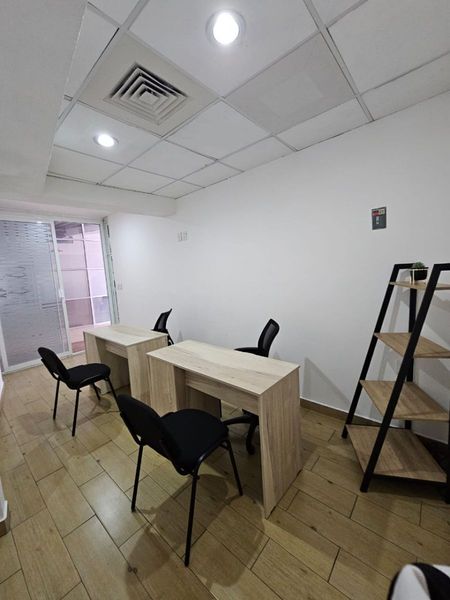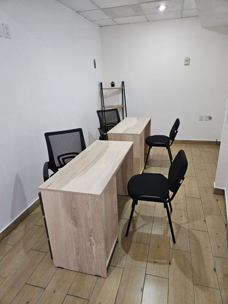 Características del espacio: Amueblada con 2 escritorios, 2 sillas ejecutivas y 2 sillas para visitas.