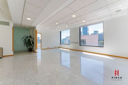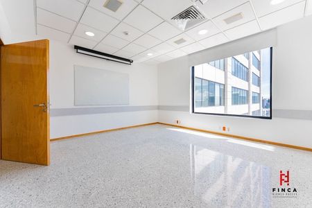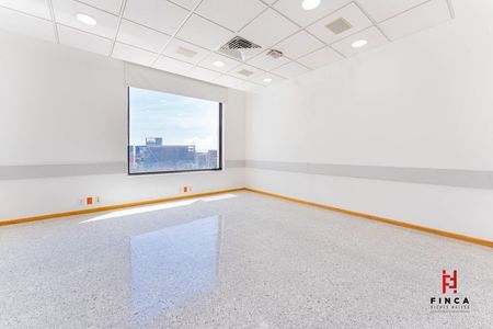 Totalmente acondicionada, cuenta con entrada a recepción, 4 privados de diversos tamaños, sala de juntas con pizarrón y pantalla enrollable, gran área de trabajo abierta, área de archivo o bodega grande, cocineta, baños dentro de la oficina para hombres y mujeres, aparte cuenta con baños comunes en el piso para hombres y mujeres.