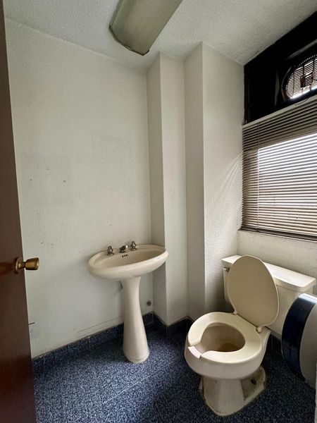 Baño privado dentro de la oficina y baños compartidos en el edificio.