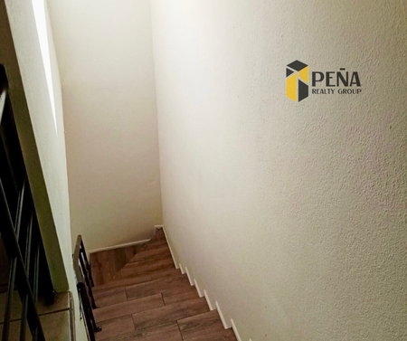 Dos recamaras un baño completo con regadera, escaleras con piso de madera, candelabro en techo