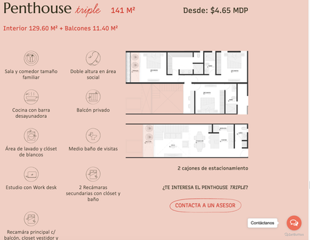 El departamento con el que soñabas, doble altura, amplias áreas sociales con balcón y 3 recámaras para toda la familia con un increíble closet vestidor en la recámara principal.