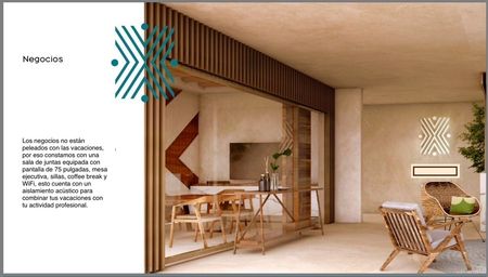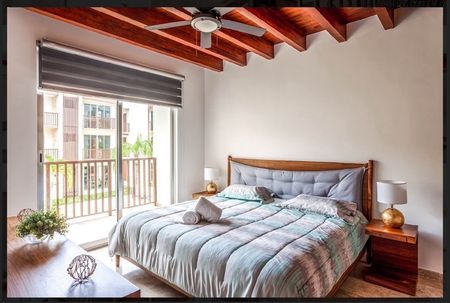 Contamos con 42 departamentos de 2 Recámaras y 2 Baños, para entrega inmediata, con un diseño Boho Mediterráneo, el cual combina maderas, paredes claras, piedra Maya y losas catalanas, equipados con :