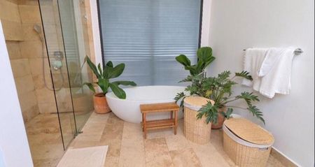 - Recámara principal con walk-in clóset, tina, regadera y doble lavabo. Además de una lindisima terraza con vista al campo de golf.