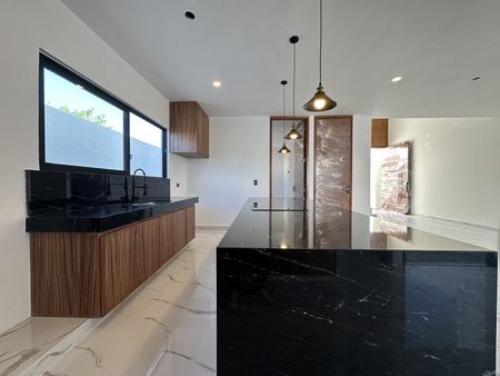 Casa ubicada a 500 m. de la carretera Mérida - Progreso dentro de privada con 135 lotes. Rodeada de áreas verdes con fácil acceso a plazas comerciales, hospitales, escuelas y la playa.