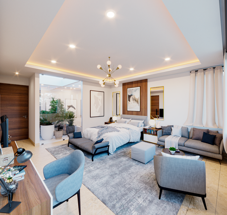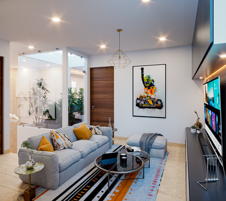 • Sala comedor con jardín interior con acceso directo a terraza y vista a la alberca