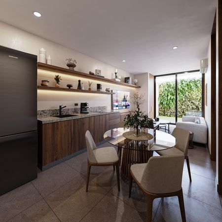 Este departamento es parte de un desarrollo que ofrece una experiencia de vida moderna y sofisticada en un entorno que fomenta el bienestar y el disfrute de los residentes.