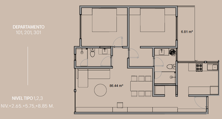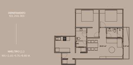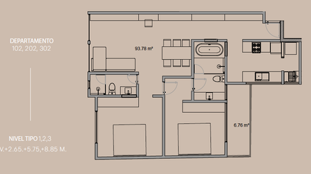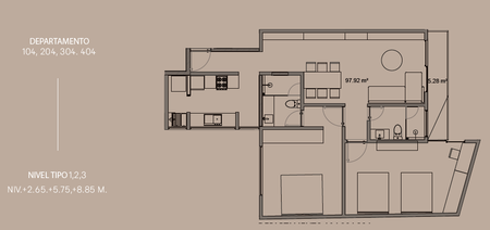 Departamentos de diversas superficies desde 53.51 m² hasta 97.92 m².