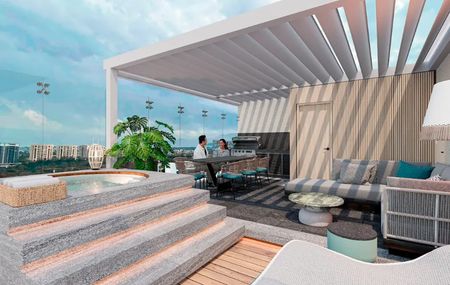 Áreas Sociales: Lounge bar, Cafetería, Jardines con asadores, Roof Garden, Salón eventos, Jacuzzi, Fire Pit, Áreas Verdes.