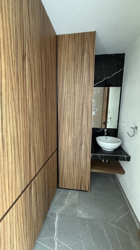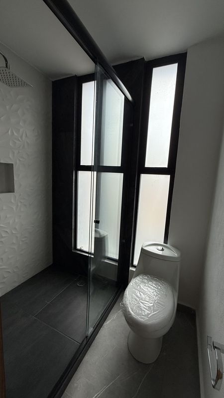3 baños completos + 2 medios baños (uno en planta baja y otro en el Roof)