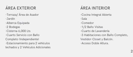 Terraza/ Área de Asador -Jardín -Alberca Equipada -2 Bodegas -Cisterna 6,000 Lts-Cuarto Servicio con Baño